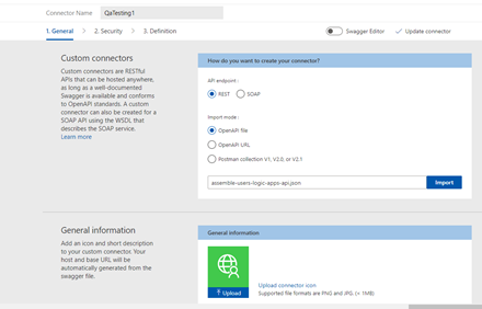A Logic Apps Custom Connector (LACC) provides a template of where the DutySheet API endpoints can be reached, what triggers DutySheet will run and what to expect from endpoints them after submitting data